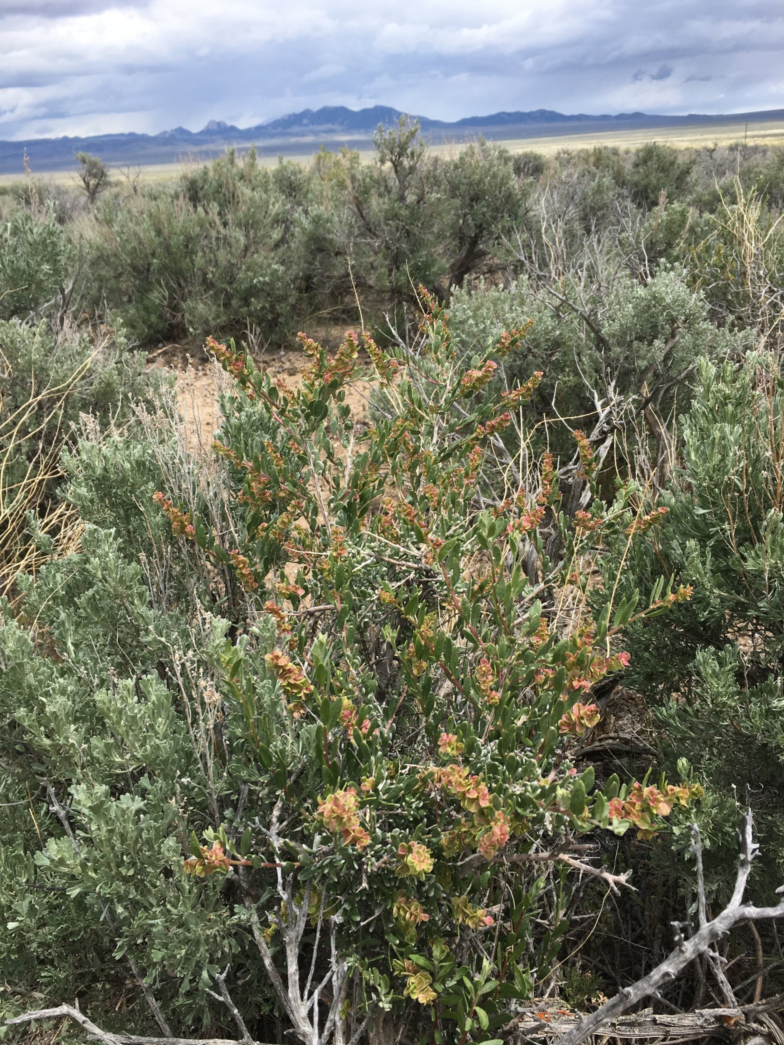 Grayia spinosa, spiny hop sage, Goshute Valley, Elko County, Nevada, 19May2017.