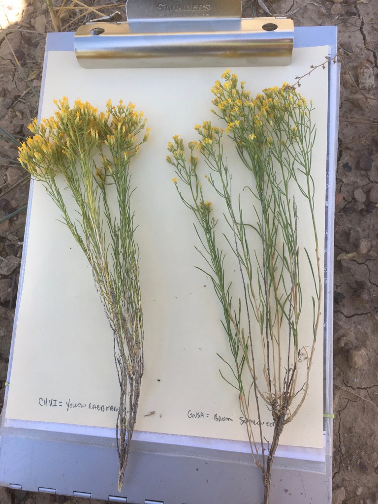 Trick question! Obviously it’s both. Two commonly mistaken plants that co-occur on many of our rangeland sites and with enough precipitation, can look remarkably similar at first glance. Yellow rabbitbrush (Chrysothamnus viscidiflorus) on the left does not have obvious petals (ray flowers) whereas broom snakeweed (Guiterrezia sarothrae) on the right does have easily visible flower petals (ray flowers). Credit goes to Dustin Ward for the photo.
